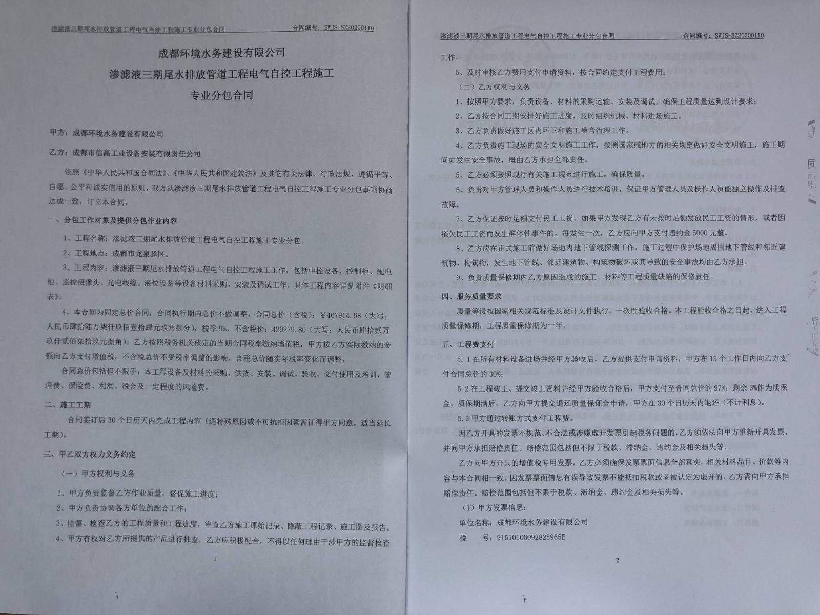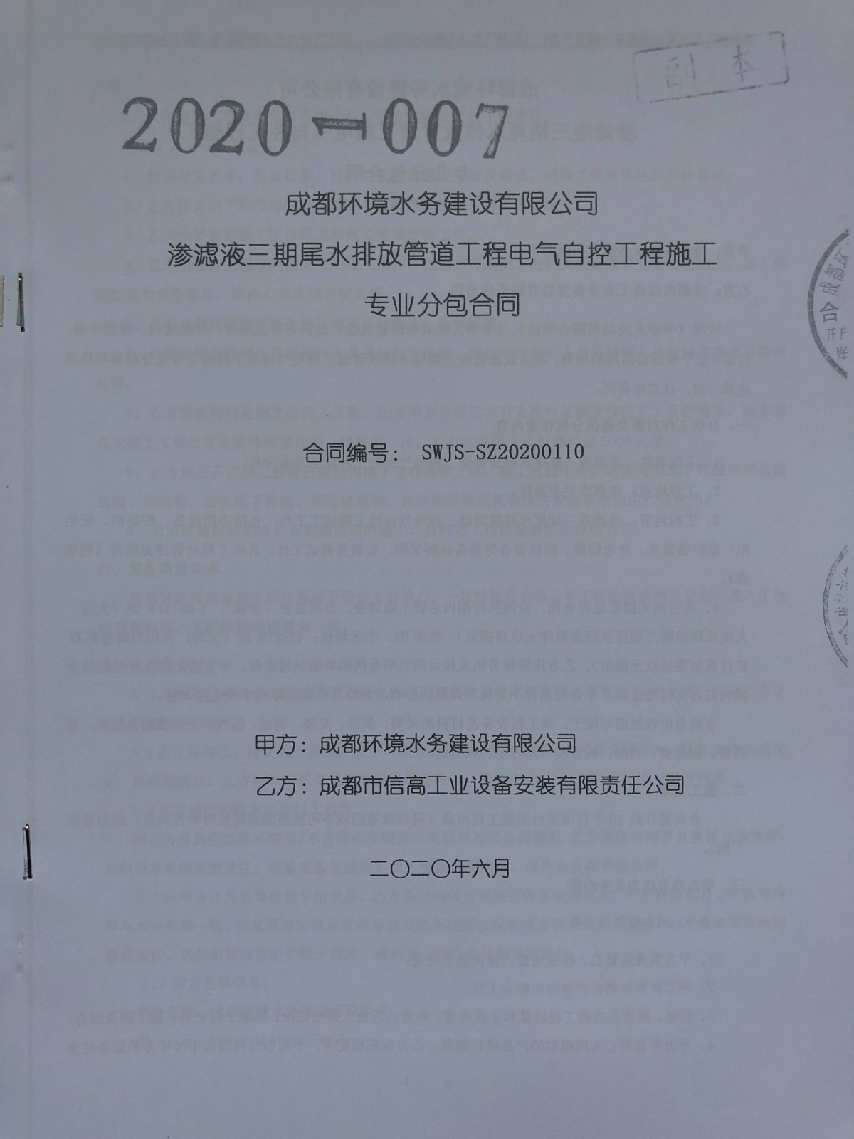 成都環境水務建設有限公司滲濾液三期尾水排放管道工程